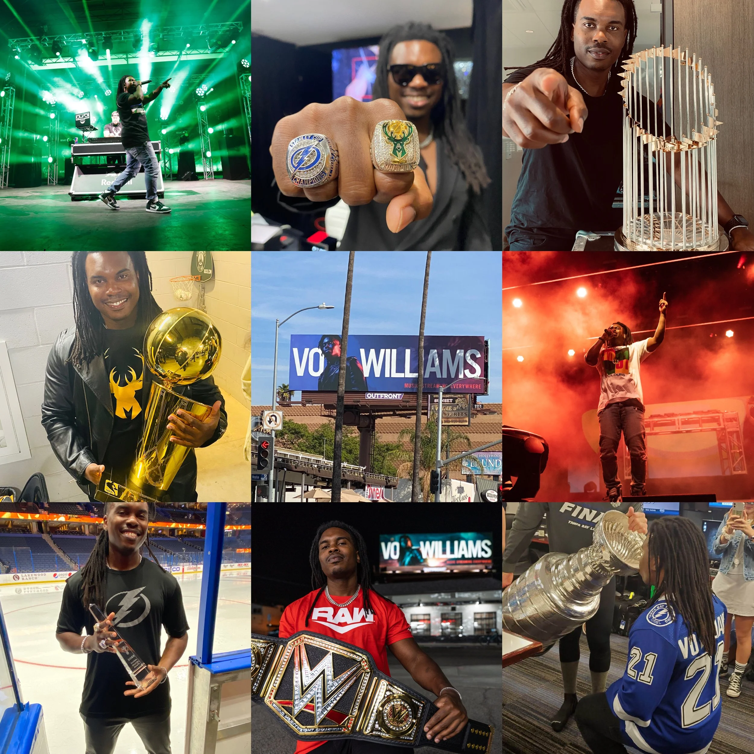With over 2,000 song uses in film and television, Vo Williams is recognized as the most synced hip hop artist in history. His music has been featured in countless films, TV shows, and video games, and he has even written theme songs for three different professional sports teams during their championship runs. In addition to his work in film and television, Vo Williams is also the featured artist and theme song creator for WWE Raw, adding to his growing reputation as a modern-day lore, and a living figure of sports superstition.